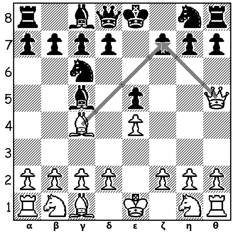 Αν ο μαύρος αδιαφορήσει και δεν καταλάβει την απειλή που έρχεται, τότε στην 4η κίνηση ο λευκός κάνει ΜΑΤ, κόβοντας με τη Βασίλισσα το μαύρο πιόνι του ζ7.